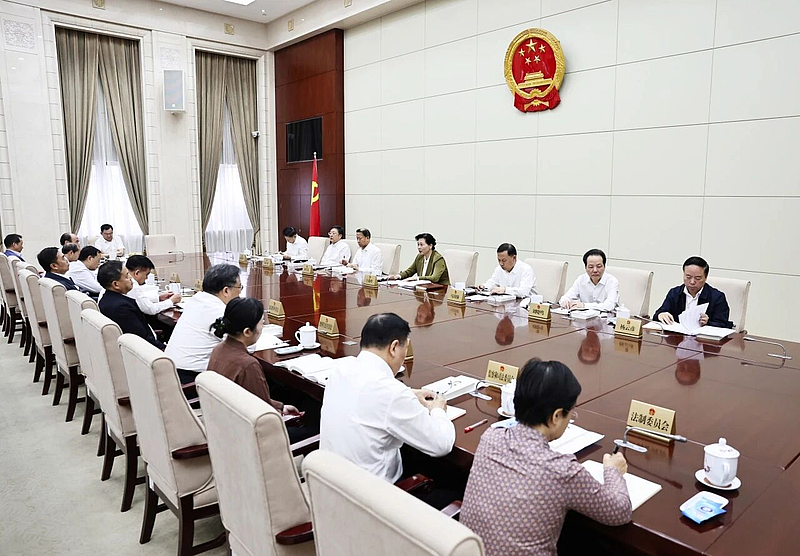 9月26日,省人大常委会党组理论学习中心组围绕《习近平谈治国理政》第五卷召开集体学习会议,要求把学习第五卷作为重大政治任务,坚持读原著学原文悟原理,把学习成果转化为推动人大工作高质量发展、助力加快建成中部地区崛起重要战略支点的实际成效。省人大常委会党组书记、常务副主任王艳玲主持会议并讲话。