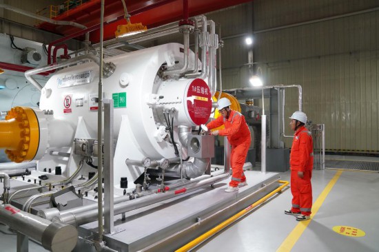 2025年7月9日,在“北气南下”能源大通道黑河首站压缩机房,综合维修工人对压缩机关键仪表进行维修作业。新华社记者 王松 摄